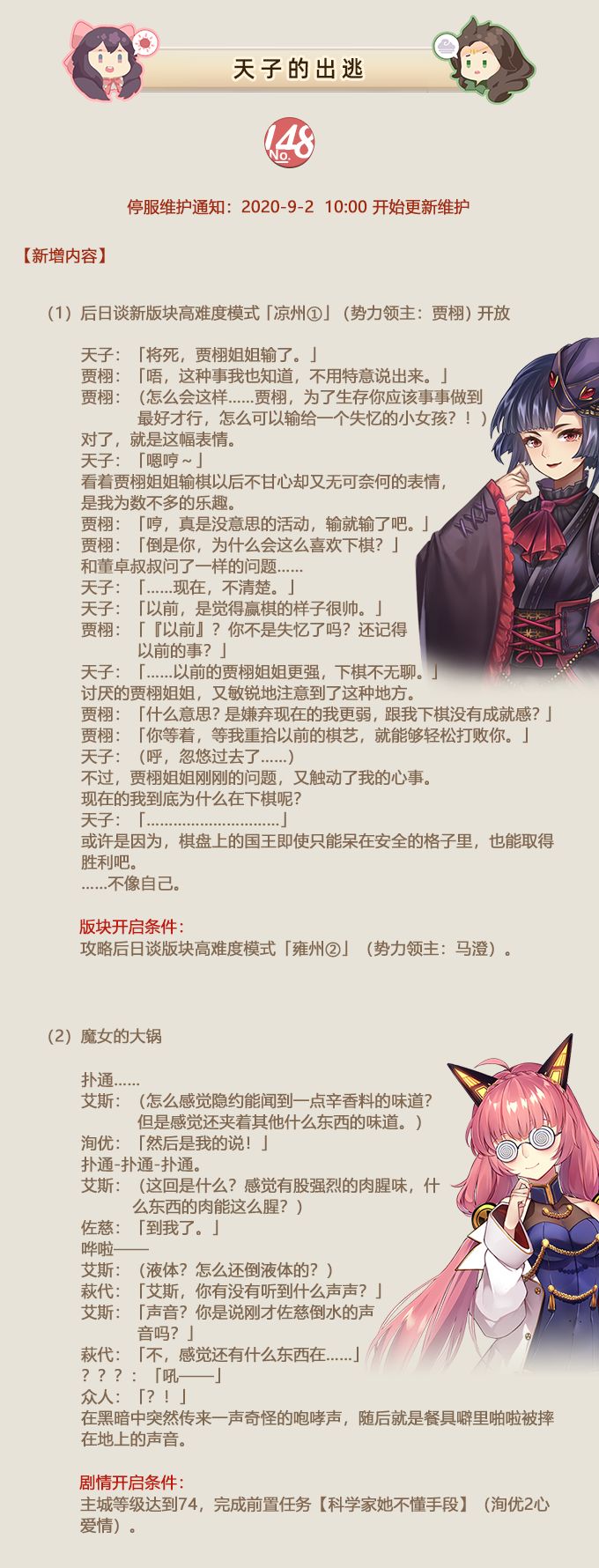 No.148 天子的出逃《姬魔恋战纪》9月2日更新公告