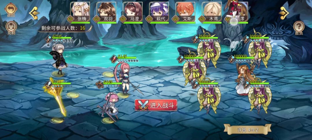 这是污吉没六心的情况下打的,用艾斯的削蓝达到封印的效果,缺点是艾斯张角卡速度,这能过只能说我练度刚好(不是) 因为等级是60而武器等级跟不上,所以练度会很怪,不推荐照抄 本场带857的有: 女仆(无谋略宝石),孙策(无关紧要),艾斯(113+的速度就行),周瑜(谋略) 要点讲解: 1、开局污吉(110速以上)、女仆(降智箭)、张角(109速,速度越低,艾斯需要速度越高),以及一个补伤害的中单,没有小霸王可以拿别的代替,速度110+ 2、开局三连解决前中,女仆先弱智哪个都行 3、注意对面术士蓝量和污吉蓝量,因为封印只有三回合,术士攻击力极高 4、不建议照抄,推荐是先解决三个前排,左下没了之后张角就可以安心下场 前中留几次空位让女神清一下队伍换人,索敌机制不详,但是先打的女仆,能换一个是一个吧。枪剑斧好像也优先攻击,得注意一下 5、上过弱智BUFF就不用那么怕俩术士了,推荐先解决女神,一旦不能再增援炮灰,女神还没死,十有八九会凉凉 6、物理输出没有张宝破甲效果可能没法术输出好,但如果有其他弱智箭能让女仆后上场,双弓也可以试试(我这里张宝113速是差一点就能上到BUFF的,如果有115速,在艾斯之后让张角拉应该刚刚好) 选择法术输出另一个好处是能抗术士伤害,对单伤害高 7、拉乃慈是为了补女神伤害,120上下的速度是刚需,然后是女神在跑道最左侧 搞定女神就完事大吉了,仲达一个都能收拾掉那俩术士(ಡωಡ) 最后,恭喜我终于把这万恶的曹操9过了,正式宣布进军三神大教堂(๑•̀ㅂ•́)و✧