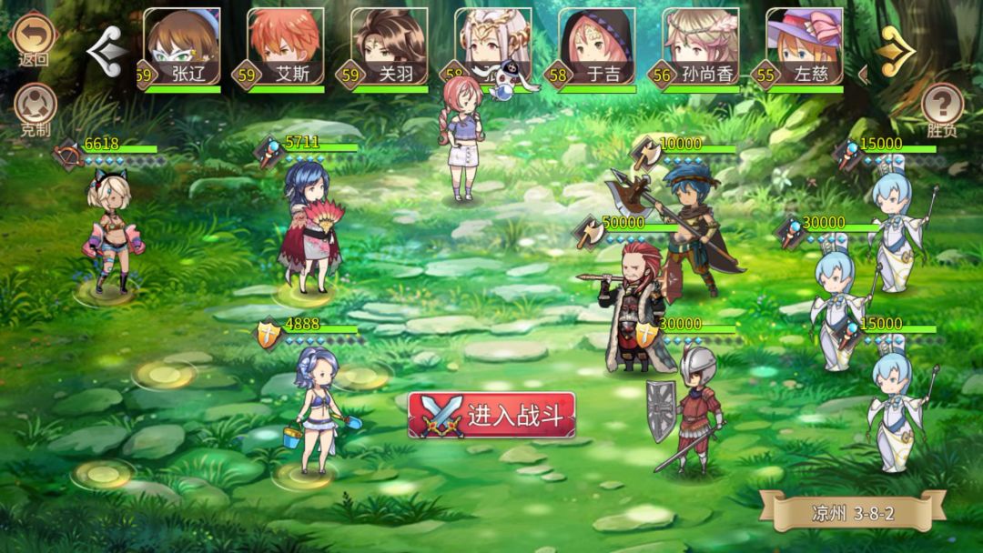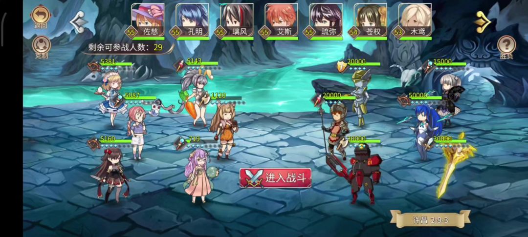 二战主要还是治疗,华佗和水镜都是7武器满宝石,两个奶妈血量越高越好,尤其是水镜,基本就靠她的技能奶了。 思路:孔明加谋略,优先后中,于吉毒可无视保护,然后前中斧兵。水镜华佗互奶,没奶就防御回技力(注意:水镜和华佗互奶就行,两个血量满后有多余的再奶其他人),于吉血量低靠增员蹭水镜技能,只要后三个不死就能打。斧兵死后打盾兵,然后就可以上场其他人打女神和她的两个小法师了,先打后下一直给女神加血的,再打后上,最后女神。