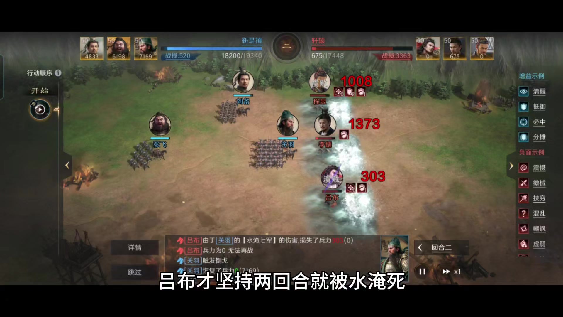 此战摆出了鱼鳞阵,刘备依然被安排在前面,不过增加的却是规避率,后排的关羽和张飞,则被加上了会心和奇谋。 携民渡江、避其锐气、无难之志的战法搭配,再看看桃园队必带的小金书仁义论,隔着屏幕都听到了刘备在说,二弟三弟放手去跟吕布死磕,治疗回血的事情愚兄包了! 关羽的战法配置,是在威震华夏的基础上跟进水淹七军和势如破竹,想要通过洪水给吕布造成降防和缴械,继而进行更加强有力的打击。除了原官善本和励心善本,我