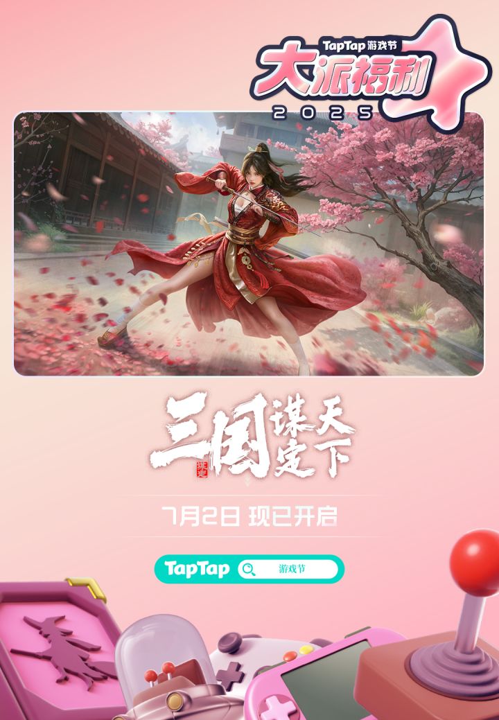 #三国谋定天下 #2025TapTap游戏节 #百款游戏填满夏天 《三国:谋定天下》xTapTap游戏节活动已上线!参与活动赢海量好礼!美好的夏天从《三国:谋定天下》开始。TapTap游戏节大派福利,主公们参与活动赢取iPhone 16 Pro Max、iPad Pro、哔哩哔哩大会员等海量好礼。福利多多,快来参与点燃盛夏激情,加入狂欢吧!活动时间:7月2日10:00 - 8月1日23:5