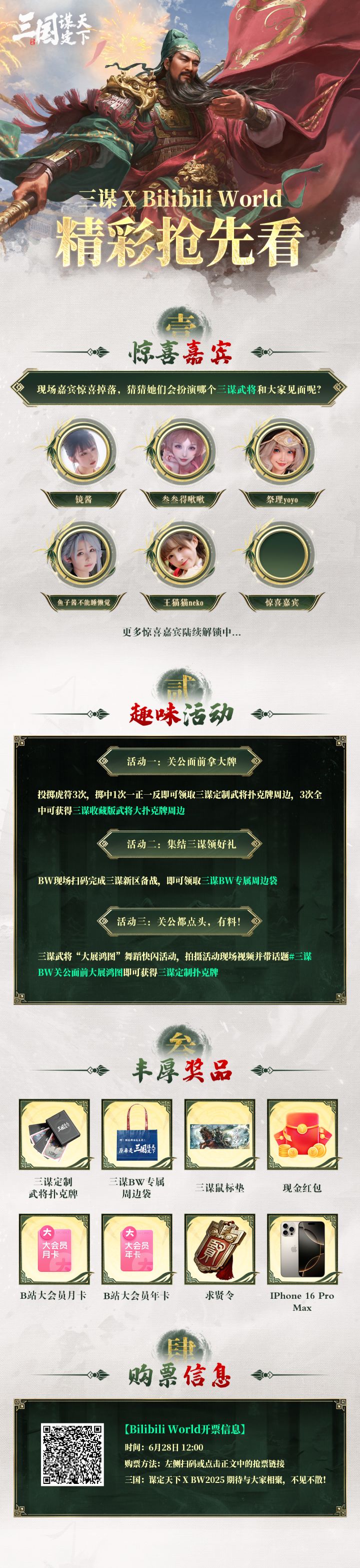 #三国谋定天下 #SLG #三国 #策略游戏 《三国:谋定天下》确认参展Bilibili World!精彩内容抢先看《三国:谋定天下》重磅参展Bilibili World 2025,这个盛夏,期待与主公们一起在线下相聚,共享欢乐!财神关公在线爆金币!参加活动更能领取三谋特别定制周边,福利满满,欢乐多多,快来一起参与吧!【开票信息】BW2025 开票时间→ ⏰:6月28日 12:00抢票链