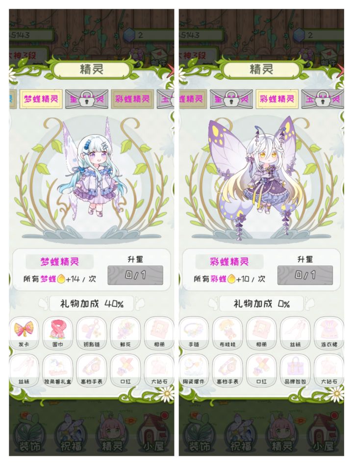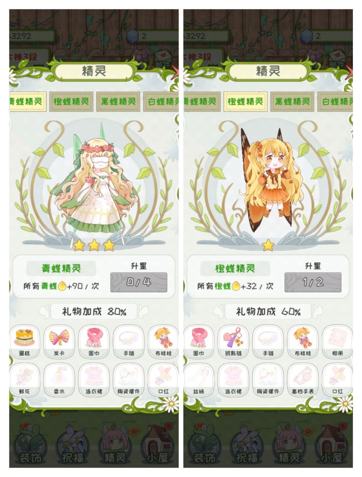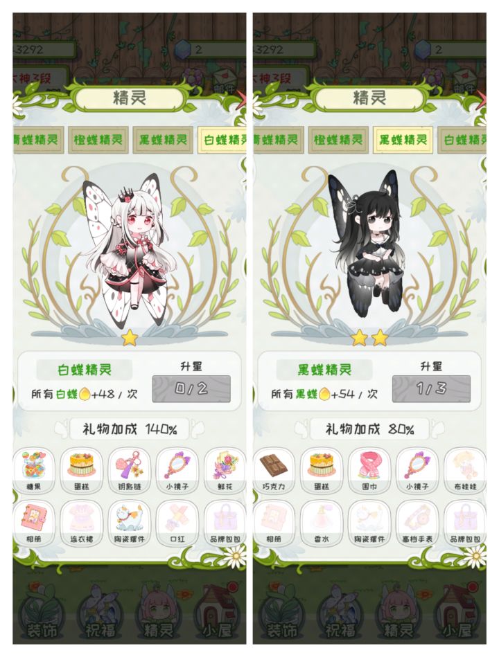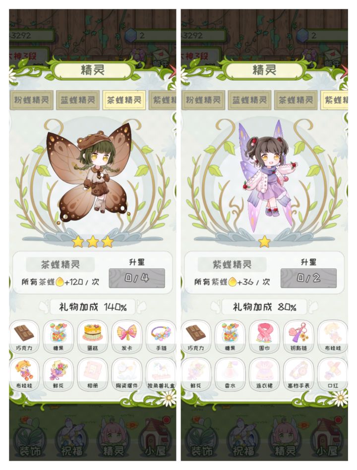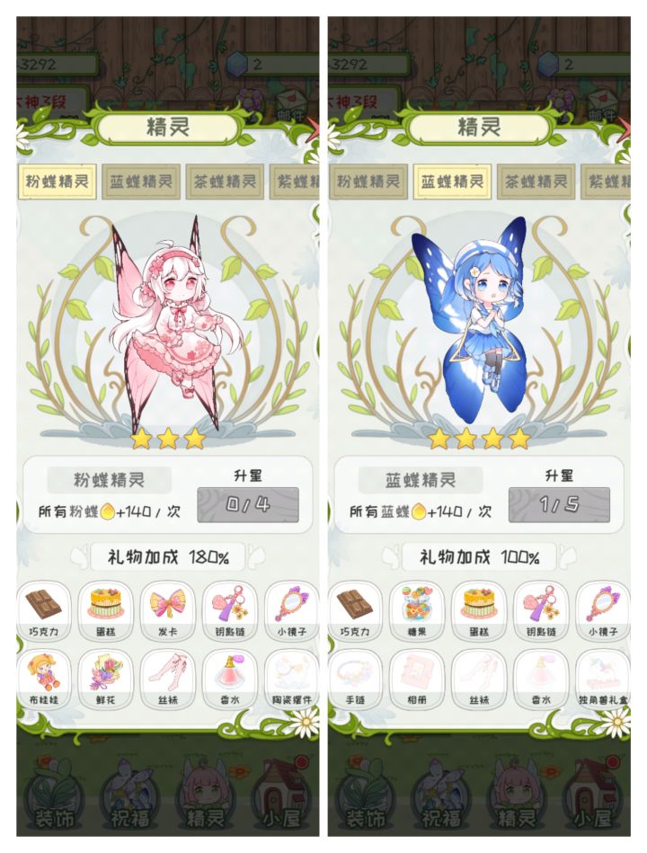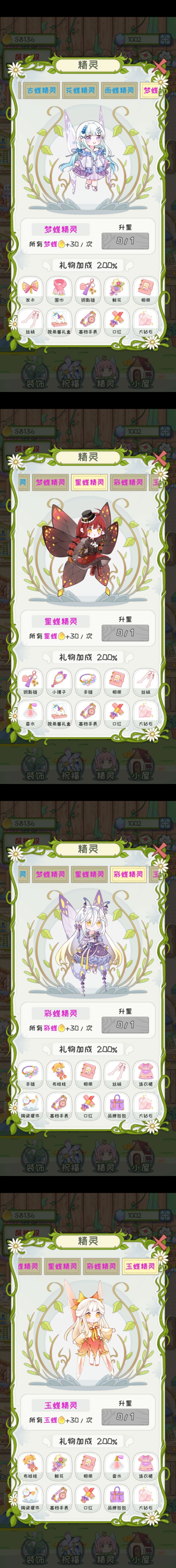 终于快收集完了 还差两只蝴蝶精灵耶耶(我就是那种不升星 不送礼 不装饰屋子 只专注升级盆栽植物和风景的哈哈哈)