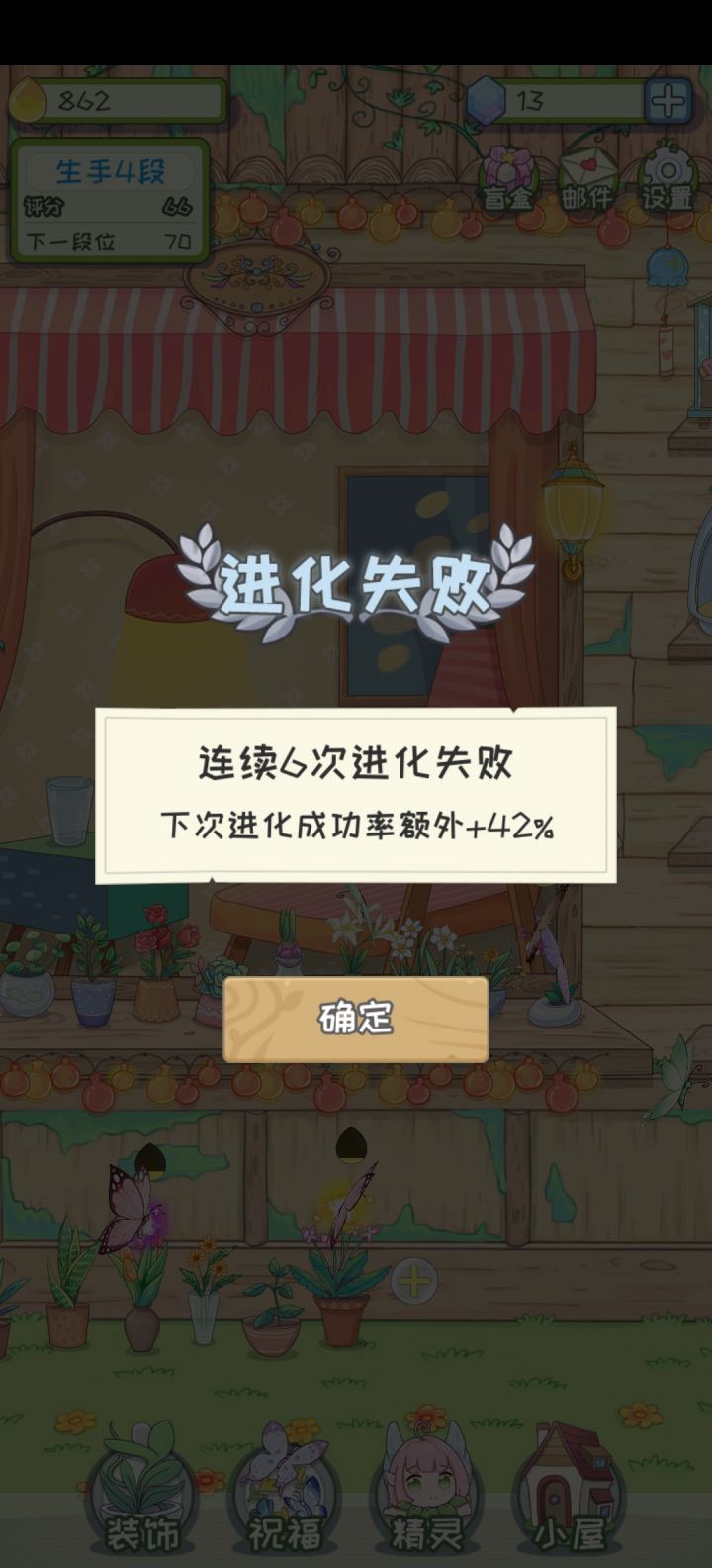 个人感觉紫蝶的仙子进化率有点低吧,我青蝶都结束了,紫蝶的发光我都没找着,还有为啥50的概率我点一次失败一次啊?