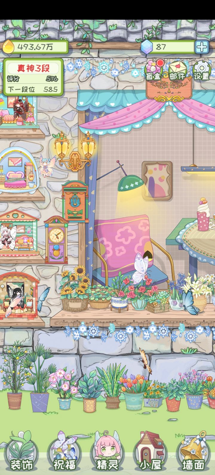 一开始很缺花蜜,到后期花蜜用不了了,蝴蝶还有两个没解锁,比较难。后面可玩性没有了,有点鸡肋,卸载吧毕竟玩了这么久了,不卸载吧就放着很无聊了
