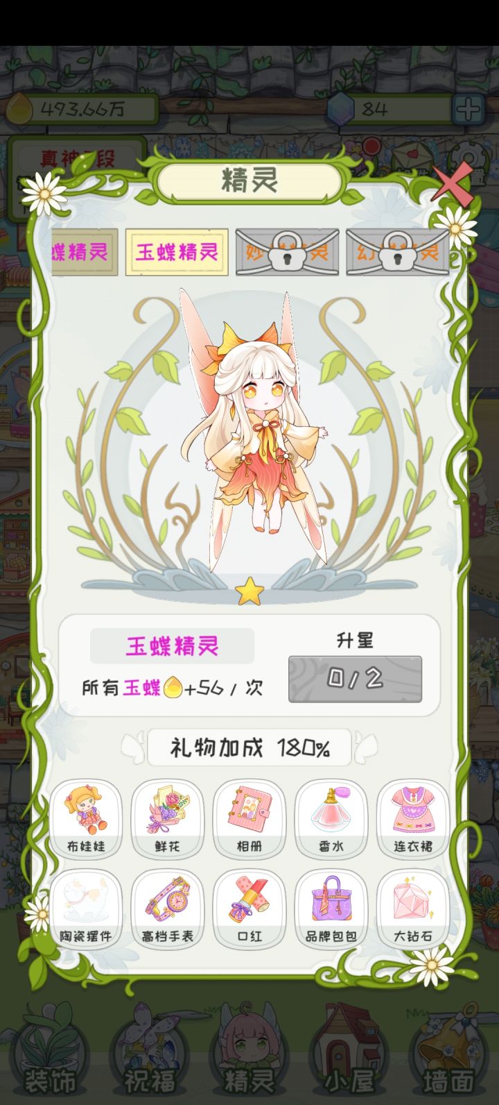玩了几个小时总体感觉还好,就是有个点不太明白,花花升级了好像没有任何用处?用那么多💰升级好像除了外观改了就没啥用了。是不是可以给它增加点功能,比如升级之后吸引某种蝴蝶的概率增加?不敢总感觉升级好浪费😂