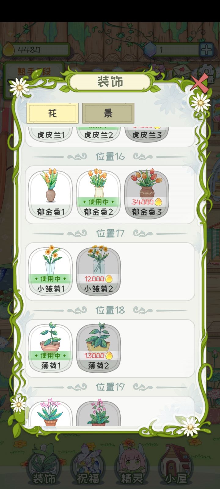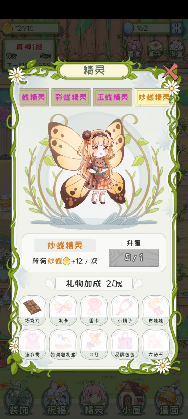 升到最高级后花蜜就没用了 太缺钻石 钻石产量太少只能看广告 每天就靠领的那20个钻石开两个礼物根本不够送的 可以考虑出个花蜜兑换钻石的 现在300w花蜜没地方用 还有为什么最后一个蝴蝶就是不出呢 小屋家具都准备好了就是不出