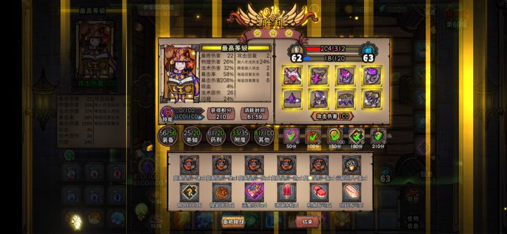 首先,游戏内容并不多,怪物卡牌加一块不到五十张,三章节里,怪物技能会有重复,无养成的情况下关卡会有一些难度,需要一些游戏理解和手法。钱就只有开宝箱一个用途关卡分为1-4层,入梦,环境,迷踪,晦暗主要是积分要求,和三星不死积分的算法如下:最多包括五个部分:装备,卷轴,药剂,附魔,其他游戏战斗界面最顶端(获得积分按钮)也能看到进度装备:基本都能做到满级卷轴:就是最底下一栏里的火球法术那