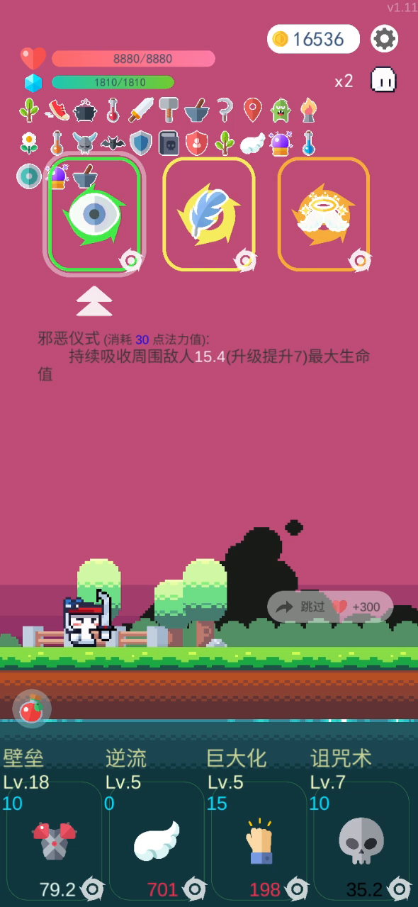 前期靠圣光神技过渡,平砍1-2无压力。转职法师之后有条件藏个诅咒,没条件藏个格挡。双格挡加法师盾也够了。优先收集水晶球(提高法师盾效率)还有蝙蝠(打人叠毒,脸黑没有诅咒的时候就靠他了),转职秘术师前后收集到寄生技能(是这个名字吗,不记得了)就非常简单了,开局圣光无敌5秒,所有人攒在一起开寄生,如果运气好捡到秘密寄生就10秒一次battle,或者如果秘术师效果触发连爆两次,敌人全都是30+毒。。这个套路除了偶尔切出去游戏再回来游戏重置了,就没失败过。。