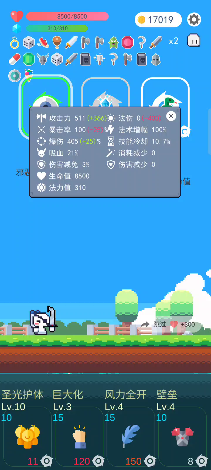 逆流1级就行,盾到2000多就行,三叶草、诅咒有就拿,没有就跳过加上限。