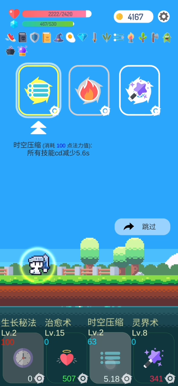 技能:减伤,钟表,羽毛,电糖战士转骑士拿吸血,减伤,暴击后面无伤打一切最终boss都是无伤,太无脑了