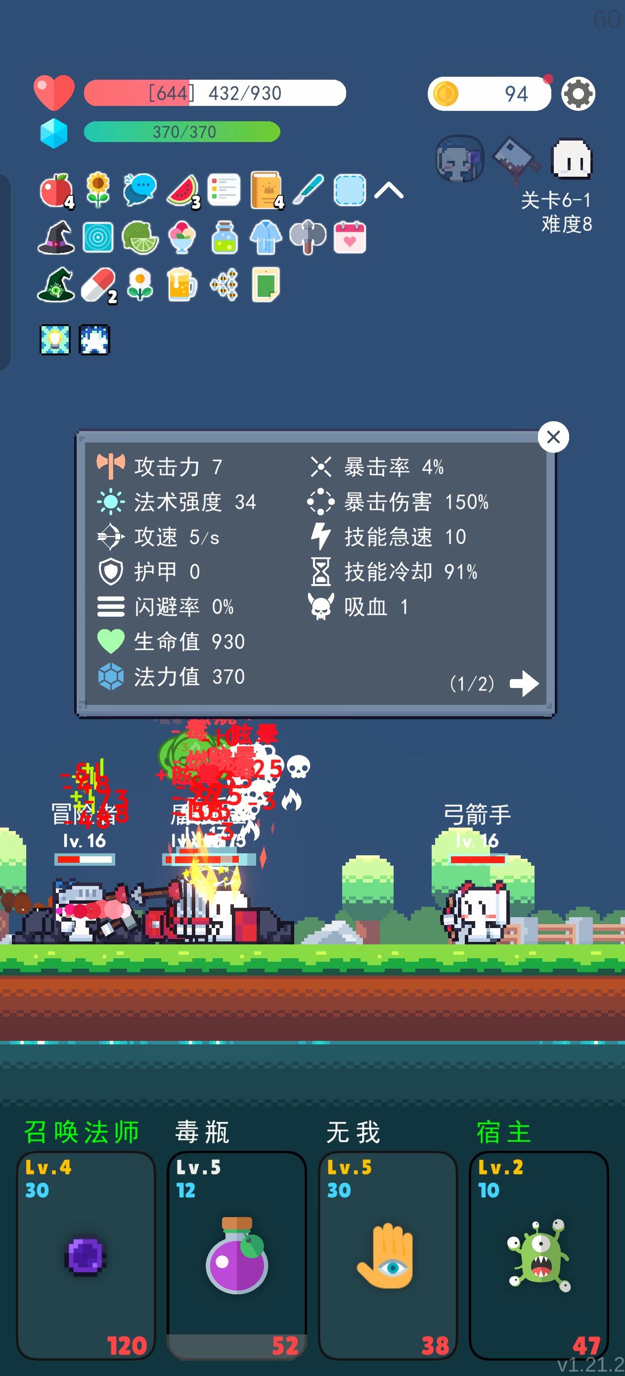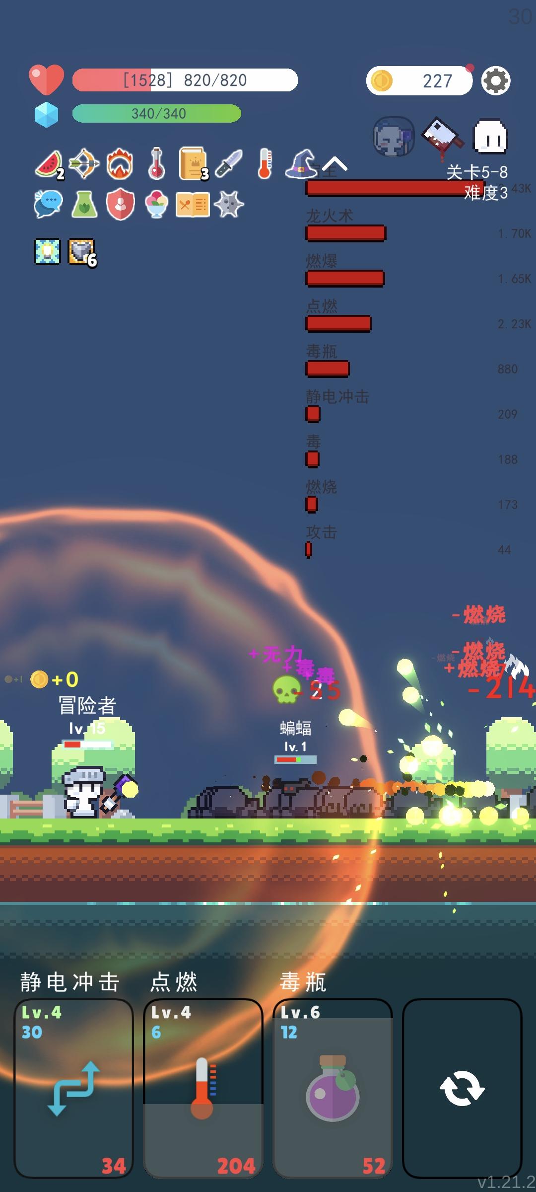 打完Boss出了个集齐火毒电冰的属性攻击能大幅度增加属性伤害的技能,但这游戏现在还没冰,所以我选了增加至6个技能槽位