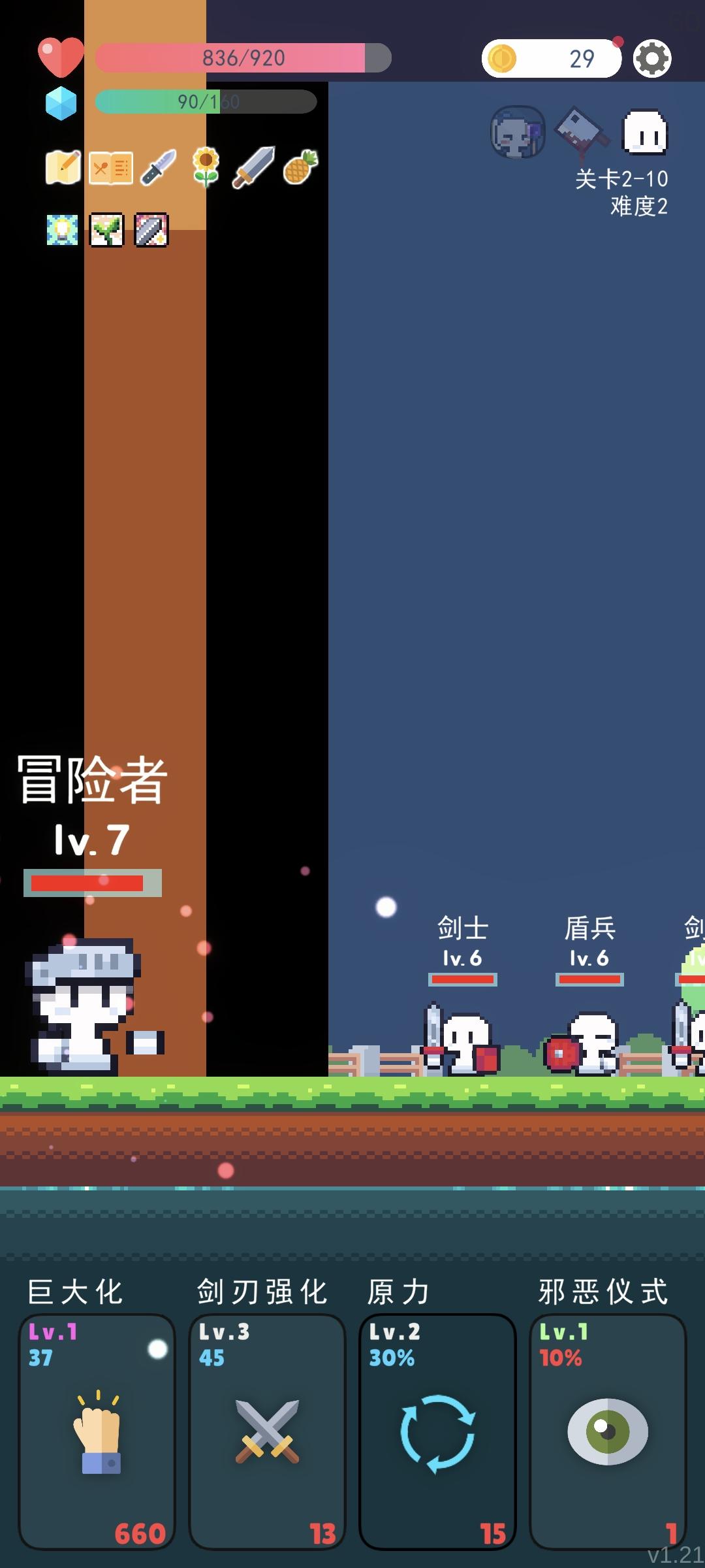 怎么组合技能都过不去,最远就到1-8,如果不是第一次选技能随机到丁丁神技巨大化根本走不到boss面前,类似回旋镖的机制,为啥扔出去的过程中勇者要空手走过去和怪一直碰碰碰掉血啊,咋想的?能不能拳套当基础装备啊,和任何武器可以组合,这样镰刀真的很有可玩性#冒险者的rogue之旅
