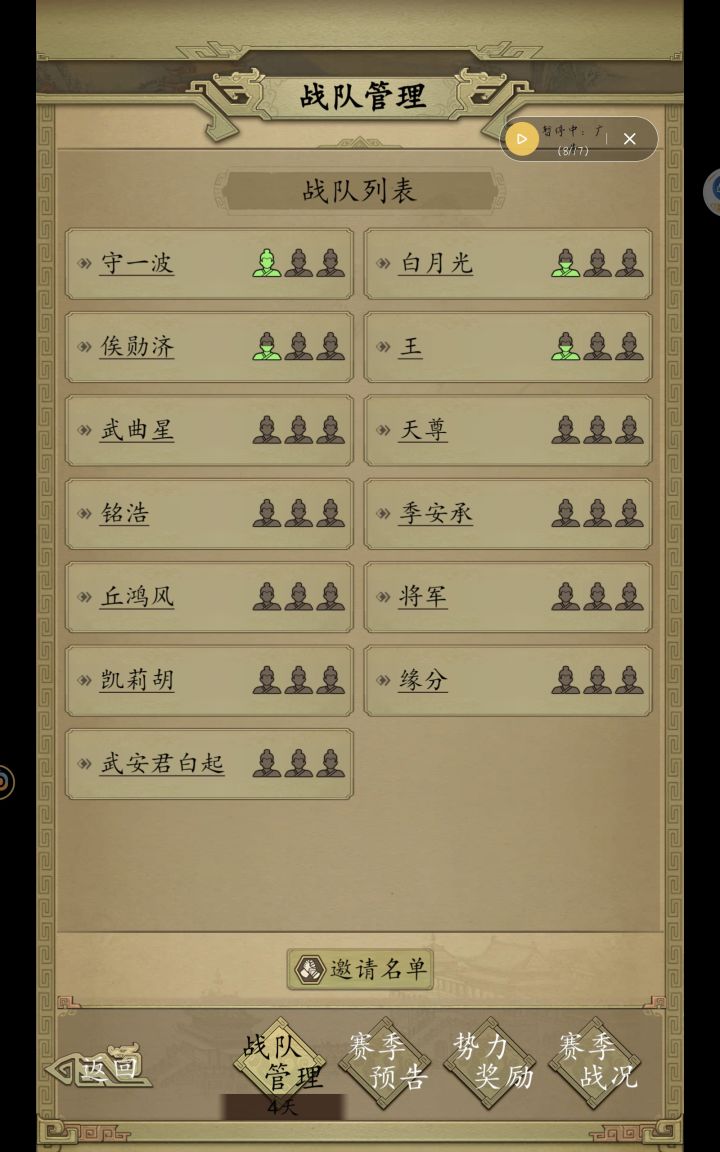 希望招来的朋友至少头几天能肝,同时能积极参与团队重大活动——比如打元宝城之类。