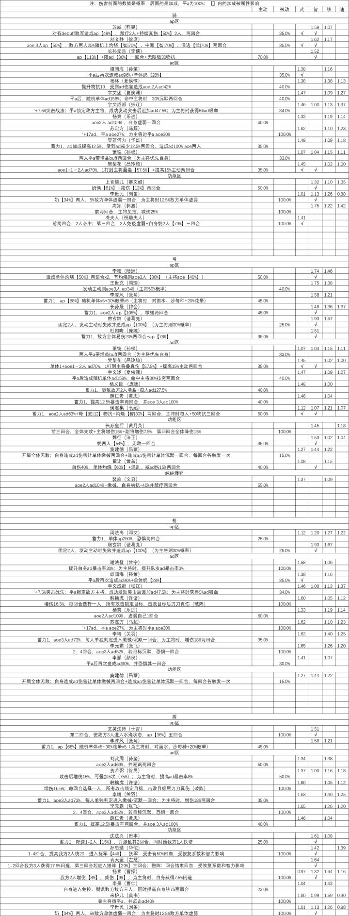 全武将数据整理