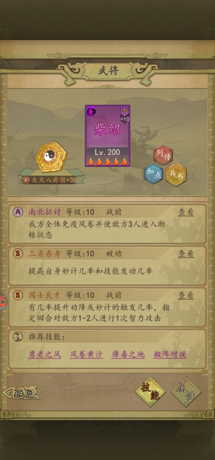 关于柴绍实际上是这样玩的,当主将,八卦镜下位可以用暴击券轴代替具体的副将就是用魏征和房玄龄。没错房玄龄就当副将玩法带俩个回血的就行魏征肯定是玩铁壁流派,具体的通过兵书来弥补来让队伍提高上限