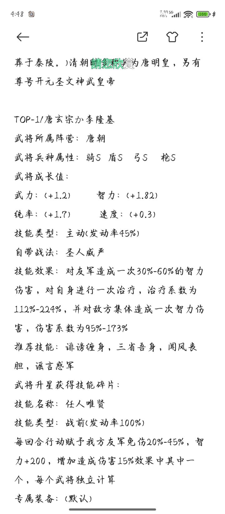 也是很久没出普通武将了,今天是花某推的李隆基,官方大大听到玩家的呼唤了吗,新武将,新武将,要普通的O(∩_∩)OTOP——帝国圣人唐玄宗李隆基(685年9月8日—762年5月3日),唐高宗李治与武则天之孙,唐睿宗李旦第三子,故又称李三郎,母窦德妃。唐朝在位最长的皇帝(712年9月8日77—756年8月12日78在位)。垂拱元年八月戊寅日(685年9月8日1),李隆基生于东都洛阳。生性英明果