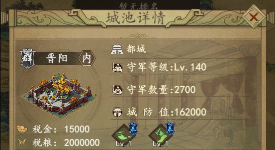1、9大都城(永昌、汉中、咸阳、晋阳、洛阳、徐州、建业、南海、苍梧)及势力都城(建业,成都,豫章)每季度可产生税金(元宝)和税粮(粮食),除要塞外其他城池每季度会产生税粮。2、每个季度22点,属于本势力的城池会将税金和税粮将存入到势力仓库。玩家充值及购买各种礼包的时也会产生部分元宝进入到势力仓库。3、每年冬季23点结算个人年度奖励,该奖励不累计。将势力仓库内所有元宝,分发给势力有年度奖励的成员