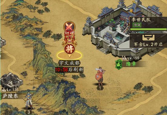 1、本势力首都附近任意城池随机刷新出3个橙色武将,与该武将切磋胜利,可以获得该武将碎片、技能通用演练碎片、技能点。武将会消失并随机生成新的武将。2、武将切磋每天最多击败5次武将。3、每次刷新出来的武将时间结束后会重新刷新武将,位置和武将都会重新刷新。4、玩家可以手动刷新武将(位置不变,武将随机改变),每天最多免费5次,免费次数消耗完则需要消耗元宝。5、武将可以锁定刷新,被锁定的武将不会自动