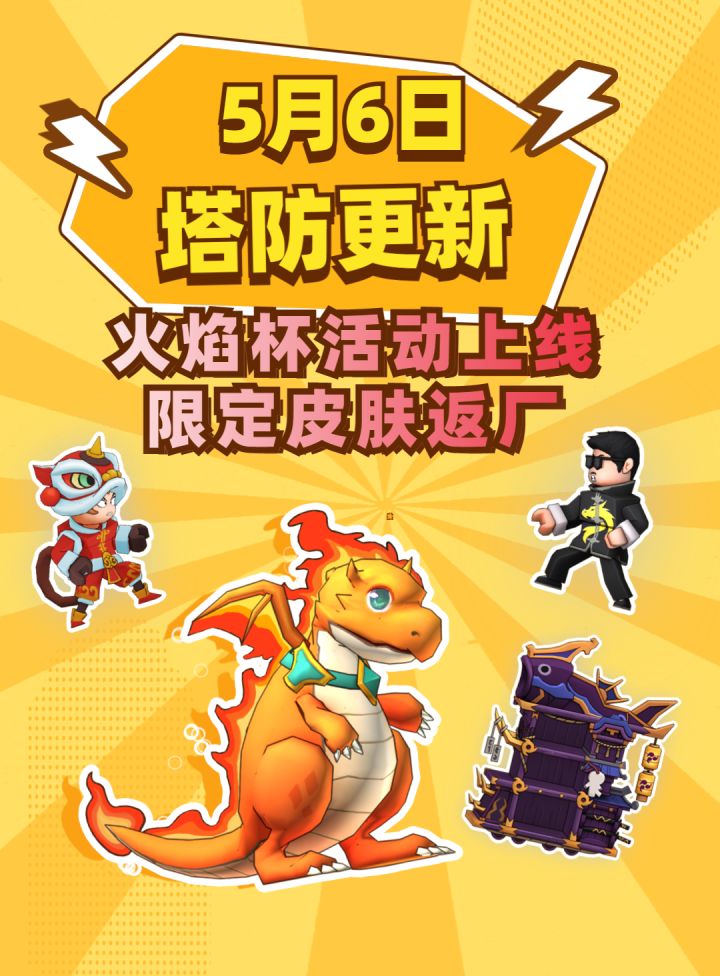 本文首发《塔防精灵》官方公众号【塔防精灵官方】,未经授权禁止“抄袭文章”转载至其它平台。关注官号每天都有签到奖励,周周都有最新兑换码,还有超多攻略和最新资讯等你来!--------------------------------------------一、新增“火焰杯”活动1、活动时间:5月6日-5月25日2、新增“炽火战令”功能3、新增“炽火好礼”功能4、火焰杯赛简介:① 火焰杯是