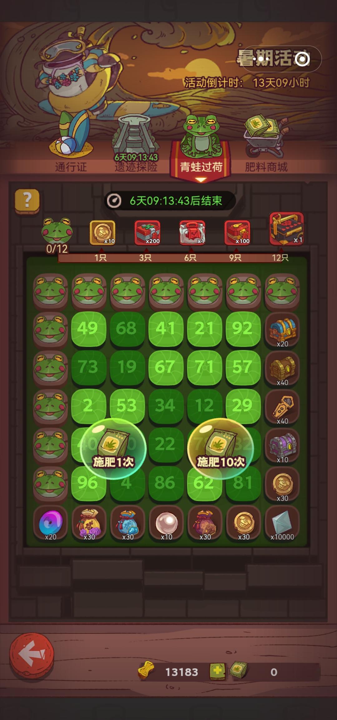青蛙活动,还没以前的挖矿活动好,氪金值又增加了,啥都领不到了,有这功夫还不如多出几个英雄呢