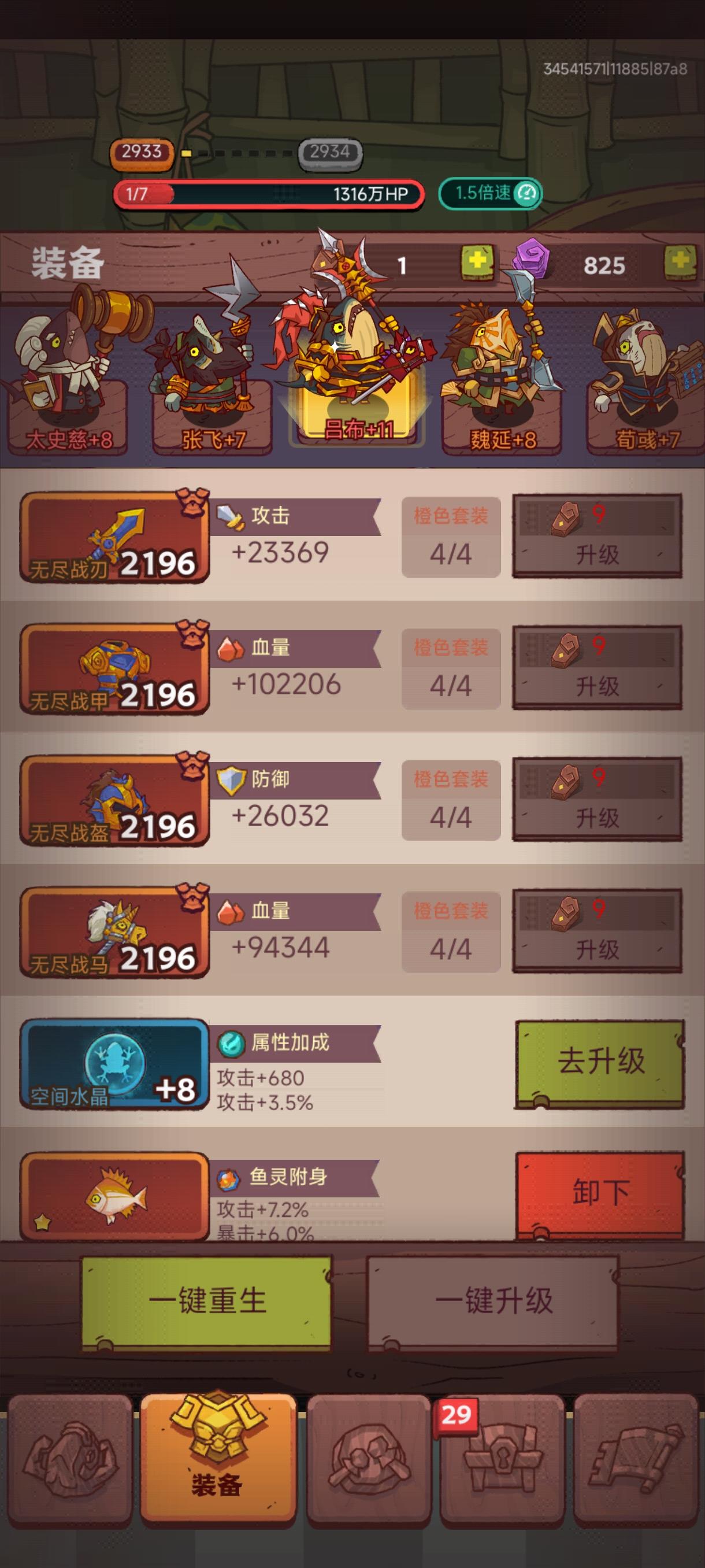 2816关,祝融夫人打到半血,被动技能火神直接全体燃烧,吕布的挂件瞬间融化,然后没了控制祝融夫人一下子就来劲儿了,吕布这没挂件光着身子也不中用啊,和祝融夫人没战两回合就缴械不行了。#游戏讨论
