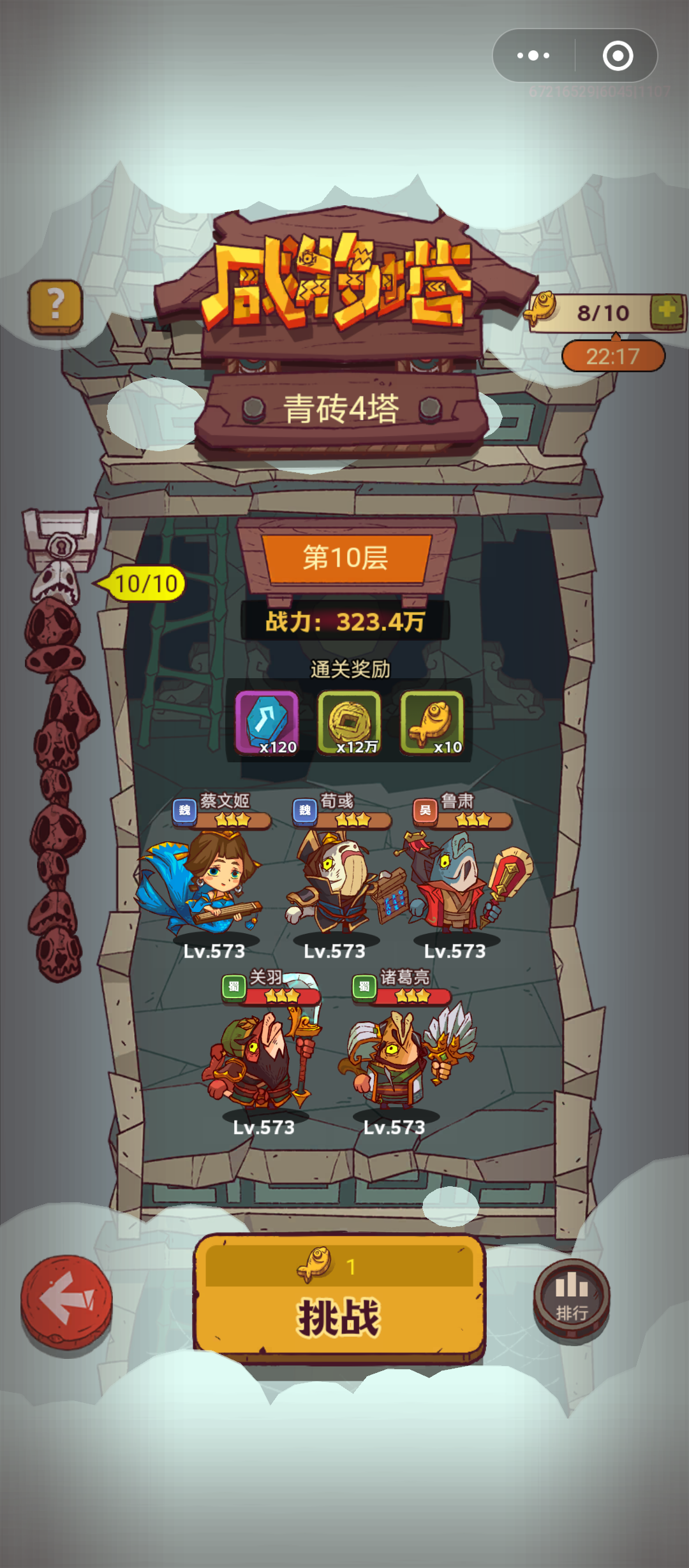 哪位大佬帮一下?他在第14塔第十层的一刀关羽那了,实在打不过
