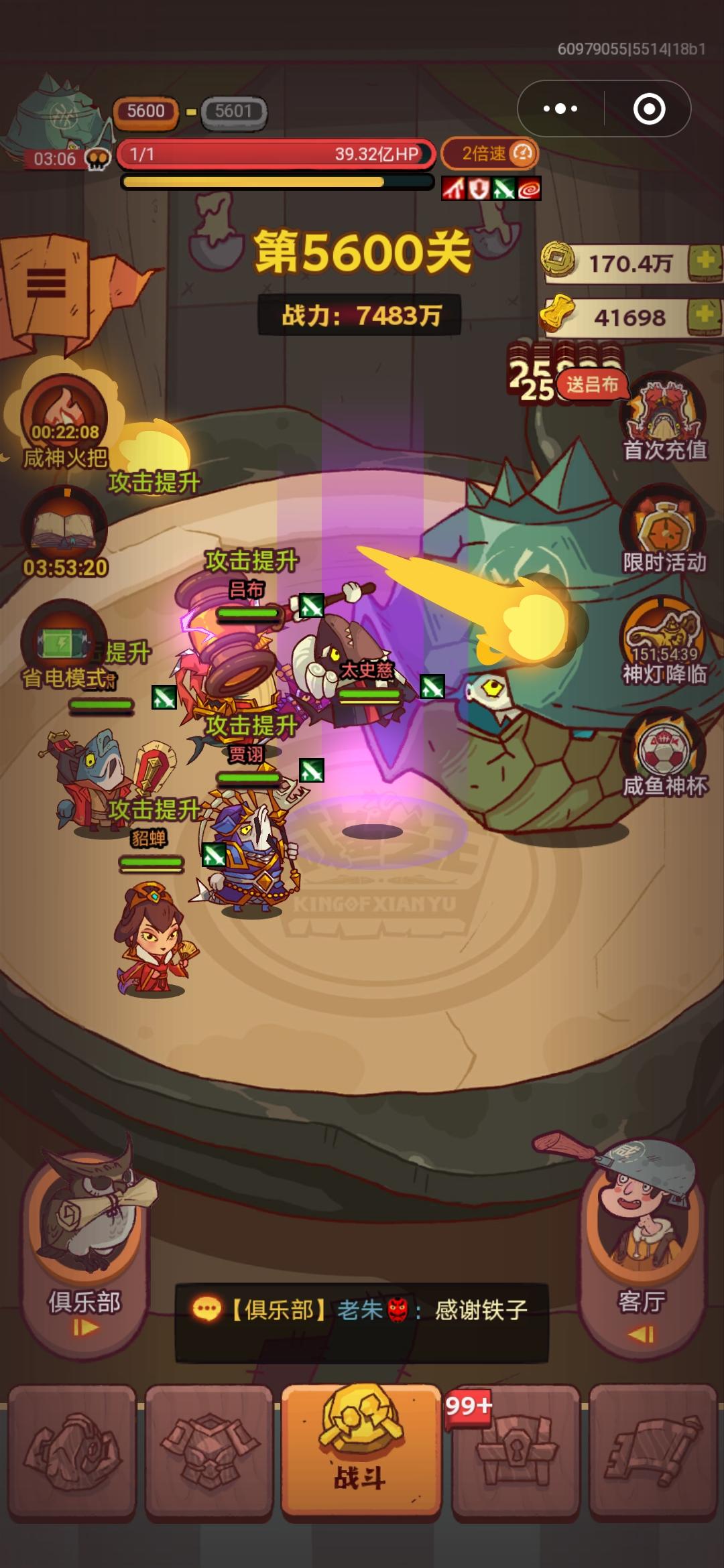 怎么才能打过5600关呢?吕布3500,赤羽4星,其它英雄1100,总战力7400万