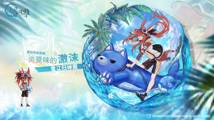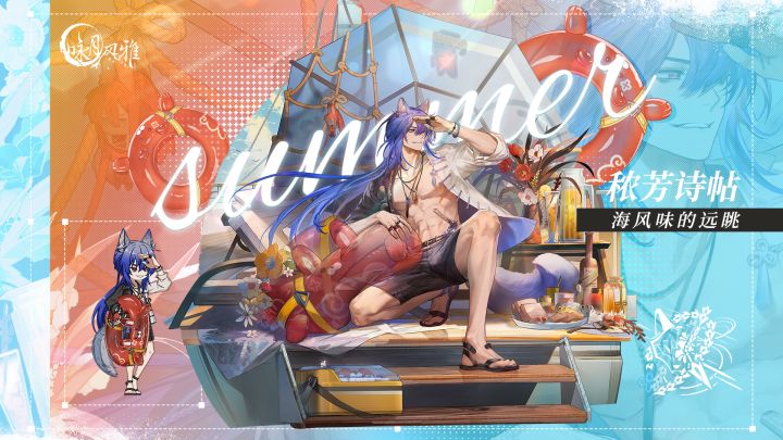 点击加入→★秾芳诗帖:【海风味的远眺】※全新动态立绘※全新战斗动作※全新战斗特效※衣装专属语音★衣装介绍盛夏海岸系列与雪消羽盖的雪执联名定制的特别款。是日光浴或海滨度假的专用服装,以轻盈透气的材质为基础,结合了先进的防晒技术,旨在为穿着者提供舒适的夏日体验。「海风浮动的仲夏,远眺记忆中鲜活的身影,如火骄阳啊,请让我们如梦中那般,永不分离。」★衣装专属『你对这个游泳圈很感兴趣?这