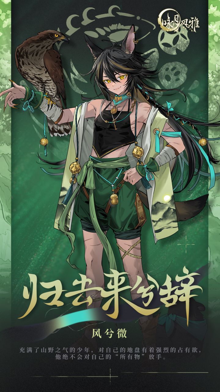 点击加入→祝者档案已共鸣★日级祝者:归去来兮辞「风兮微」·(锋)★化灵之日:7月5日★星位:娄宿★身高:167CM★职业特性:近战、召唤★角色介绍:借名于诗歌《归去来兮辞》。这个生长于自然、充满了山野之气的少年,分毫不知外界的规章,饿了便以山果溪鱼为食,困了便裹叶席地而眠。旁人眼里价值千金的绸缎,在他面前只是磨爪的工具;珍稀难得的花瓶,也只是被他打碎的玩具。他对自己的地盘有着强烈的