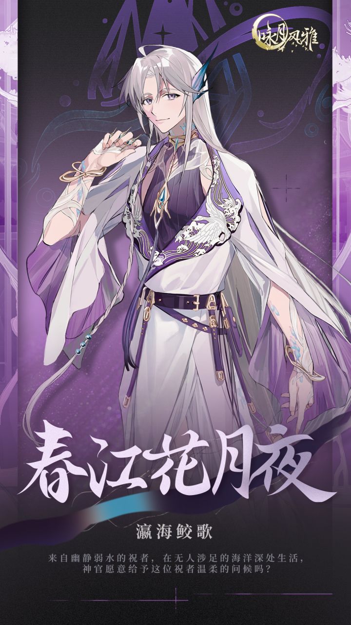 点击加入→祝者档案已共鸣★月级祝者:春江花月夜「潮生」·(羿)★化灵之日:7月20日★星位:角宿★身高:179CM★职业特性:远程、削弱、急速★角色介绍:借名于《春江花月夜》的祝者,来自幽静偏远的弱水。在那无人涉足的海洋深处,他独自一人,只有洋流作伴,珊瑚为友。当微弱的光芒穿透层层水幕,清冷的月光与之辉映时。神官会愿意给予这位孤寂祝者一句温柔的问候吗?★神予:「踏浪」提升潮生的攻
