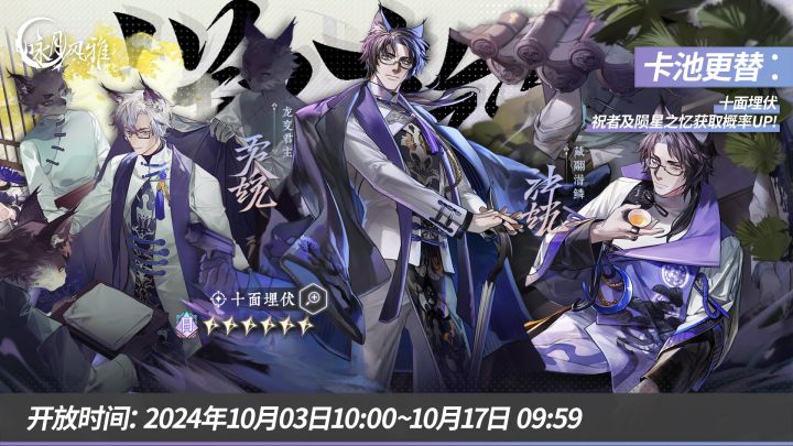 点击加入→★结缘时间★2024年10月3日更新后~10月17日09:59★结缘说明★在结缘期间,日级祝者【十面埋伏·羿】、月级祝者【观沧海·锋】,日级专属陨星之忆【不死不休】【束手就擒】结缘概率限时提升!在轮换结缘中,每进行一次 [结缘十次] 必定获得月级或月级以上祝者,当获得月级或月级以上祝者后,计数会重置。★规则说明★1.在轮换结缘中,若连续结缘50次都未获得日级祝者,则后续每次结