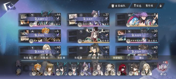只需要抽两个高山流水,初始刷一个另一个慢慢歪吧,反正要第一个蝶2之后,第二个才能从背包里打开变成初始1级的角色。打完第三章就开始蝶2,体力应该是正好的,有蝶2群攻的高山流水,后面毫无难度的直推。第一天我0充就抽了100抽,再慢第二天也能歪到。有高山流水之后把《十面埋伏》也抽出来,如果手气好的话也可以抽2个。第一个高山流水,第一天就能蝶2,先选群攻流。第二个高山流水,第二天蝶2,选单攻连击流。只
