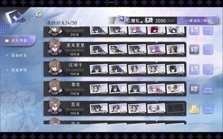 旧问题:图1️⃣平板触控笔在这两个页面所有点击无效!真的麻烦快修!对平板玩家(我本人)很劝退!新问题:图2️⃣每日任务能不能宽松一些!真的不是每天都能刷满材料去升级培养角色并消耗鸾叶的,多设置几个任务让完成每日任务轻松一点吧!图3️⃣赠礼界面能不能满好感赠送时先弹出提示!我知道可能有人需要赠送不喜欢和一般的礼物来解锁对应语音,但能不能在满好感时赠礼前先弹出提示确定一下,而不是送出去后再提示