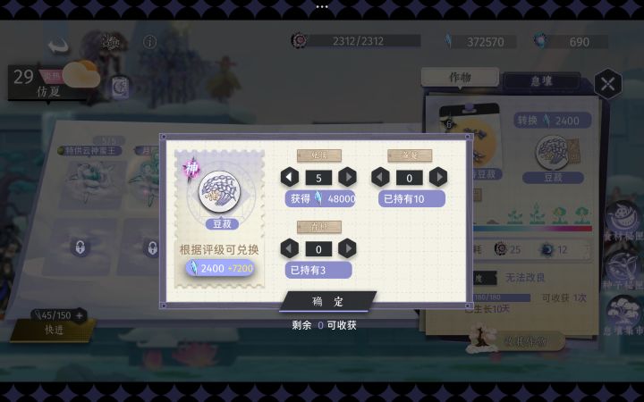 图1️⃣好友界面:图一中红框是好友赠送后的回礼么?“一键领取/赠送”功能不包括回礼是吧,真严谨呐=_=图2️⃣手机每日对话:老虎这个最后一句错位了。图3️⃣角色共鸣灵感:这个灵感一共150,为啥收集奖励才到120啊=_=图4️⃣梦境三十寻:图四红框这个角色冷却无法归零是bug吧?没找到有关卡介绍说会这样啊。图五晒一下我第一次收获到的“神”级作物!顺便问一下大家:①梦境是怎么打完100的