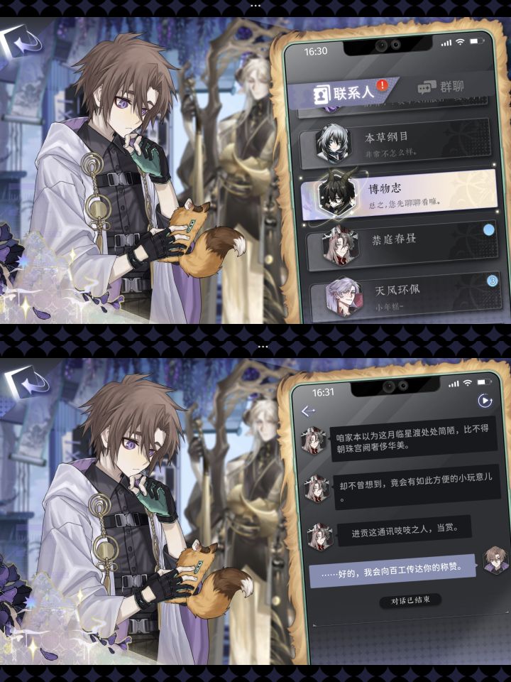 #咏月风雅 一开始奔着画风和剧情入的,立绘我很喜欢,剧情稀烂无力吐槽,招财进宝完全就是没话找话,蠢到很尬的程度,在蜻蜓尾几把乱碰给我过剧情过红温了。而且没大有必要每关都要战斗。。就算有想看剧情的遇到卡关耗久了也不想看了。我玩其他类似游戏基本不过主线,这是我唯一一个主线剧情推完了的游戏(主要是为了奖励)。怎么说呢,里面官推cp给人一种强卖的感觉。先是小麒麟那对,嗯。。不儿,先是不分是非小麒麟