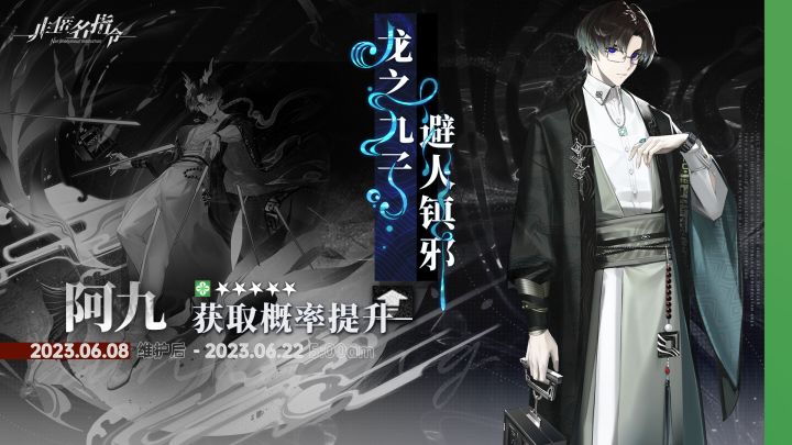 >>>LOADING - 未知信号接入中== 「限定招募」事件载入完毕 == ★全新 [限定招募] 卡池—— [ 医者仁心 ] 即将开启,活动期间,限定5星噬灵者「阿九」招募概率大幅提升!>>活动时间: 2023年6月08日 维护后 ~ 2023年6月22日 05:00>>活动说明:活动期间「阿九」招募概率限时提升>>【限定招募】卡池招募规则●使用定向特质简报进行招募,每次招募消耗1个