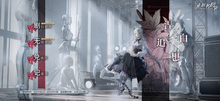 »»»LOADING - 未知信号接入中»» 讯息来源「不夜城」== 「涅白追想」限时活动 情报解锁 ==坏掉的人偶失去了温度,但真心可以唤醒破碎的灵魂。幼时弹奏的钢琴曲,至今仍在二人共同的记忆里回响……>>活动时间玩法及活动商店开启时间:2023年06月22日5:00 ~ 2023年7月6日 5:00>>参与条件代行者需开启组织合作功能。>>活动说明●活动期间将限时开放<