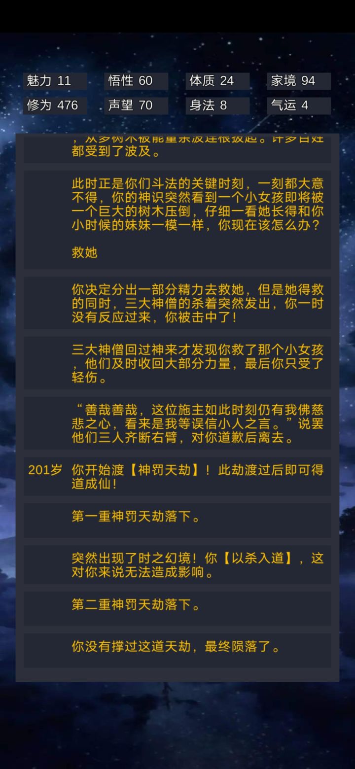 泪,好不容易450修为了要通关了结果出现了个走火入魔要不要醒来,我想着我有开挂人生就再等等,然后,然后就挂了