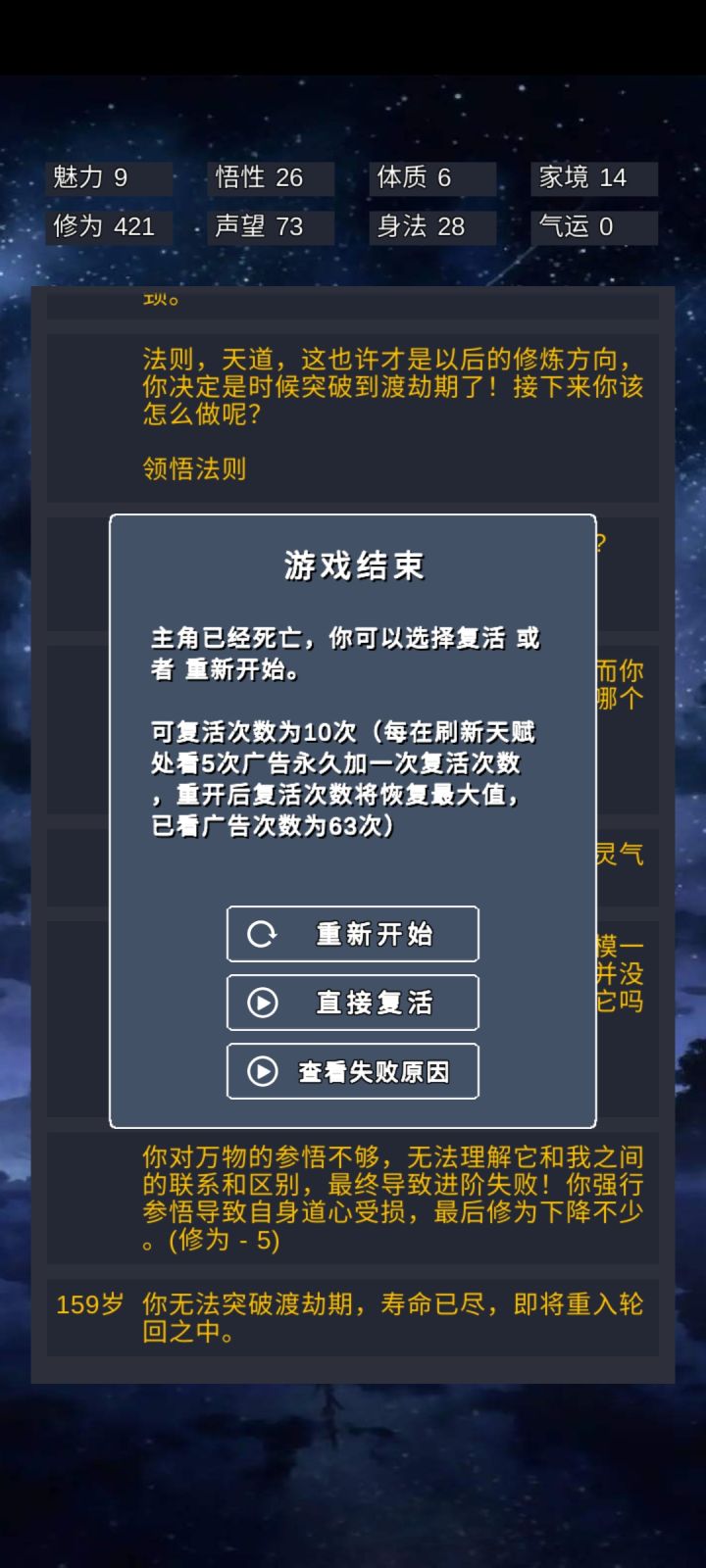 这个境界突破总是失败啊,仙人传承都继承了,还是脸黑死在这(这局在这突破了五、六次)