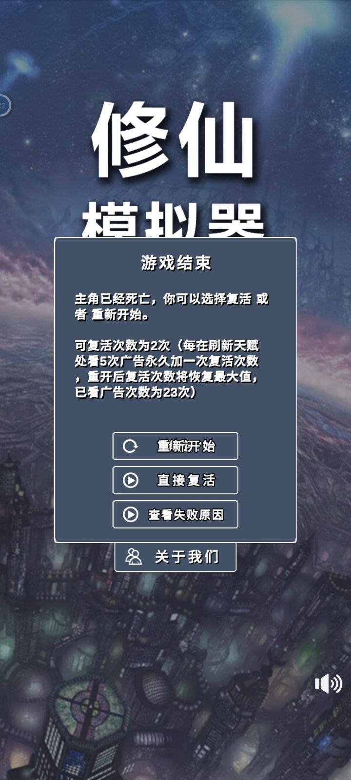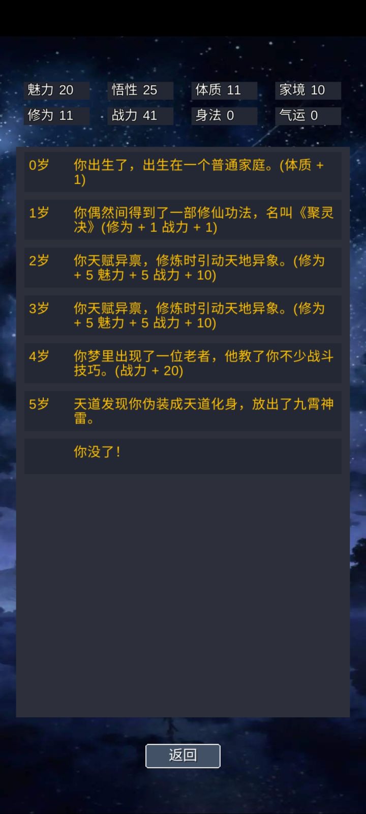 选了个天道化身的选项,就是早死呗