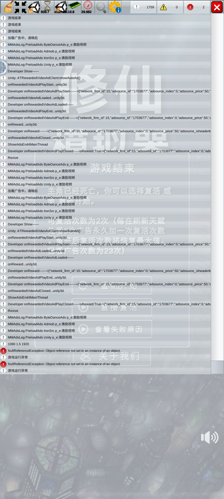 目前只在三次三界排行挑战失败后选择看广告复活出现这种情况,部分分支选项复活可正常复活