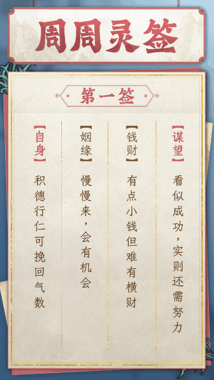 亲爱的仙友们,又是充满希望的一周!快来抽取你的专属周周灵签,看看未来一周运势如何?无论是职场晋升、学业进步,还是爱情甜蜜、生活小确幸,都藏在你的灵签里哦!带着满满正能量,勇敢迎接挑战,紧紧抓住那些稍纵即逝的小幸运吧!#修仙时代 #游戏安利 #游戏推荐 #游戏讨论