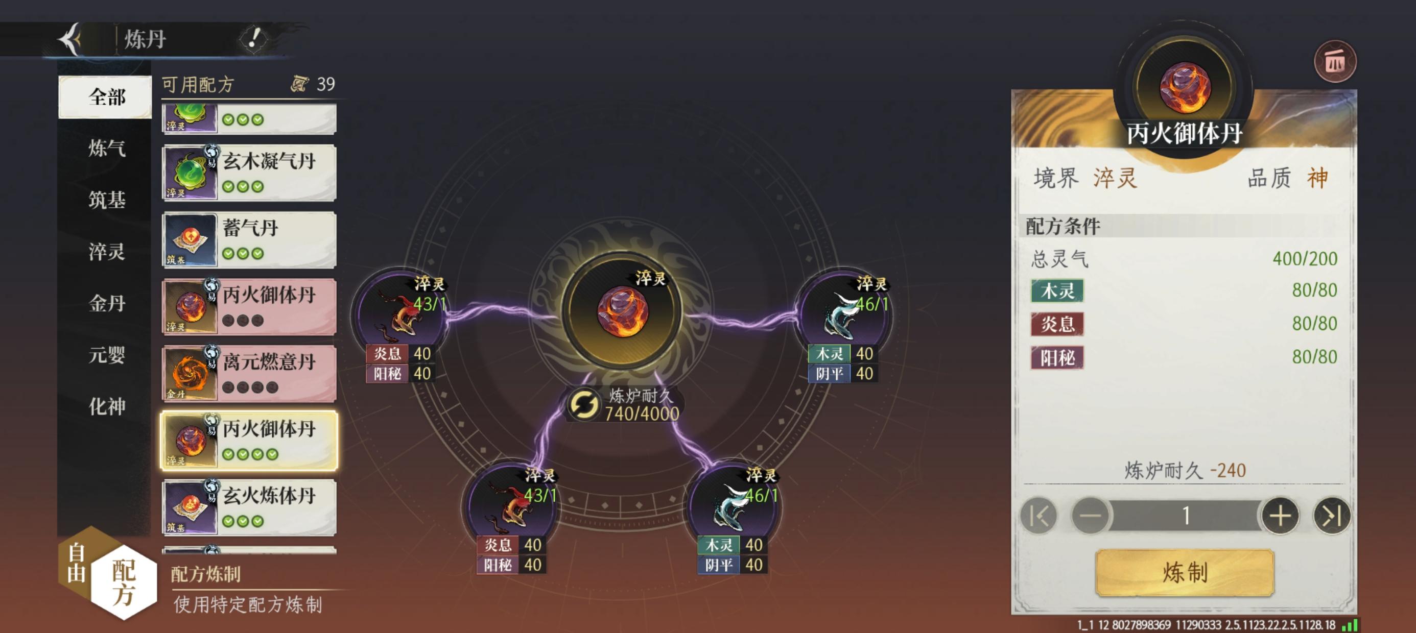 紫色材料炼金色淬灵期百分比属性药丹方,欢迎补充#修仙时代 #修仙时代公测