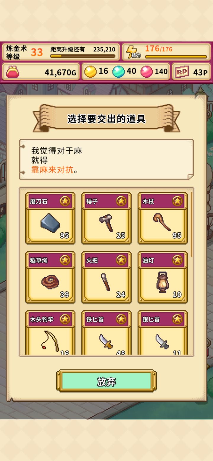 注意看,视频以绳子为例子,大成功的炼药锅“魔法阵”会卡顿一下,跟普通的成功是不一样的, 只要把握住机会,后台杀,还是可以在一瞬间重新来过。 当然了容易得的物品就没必要了😂