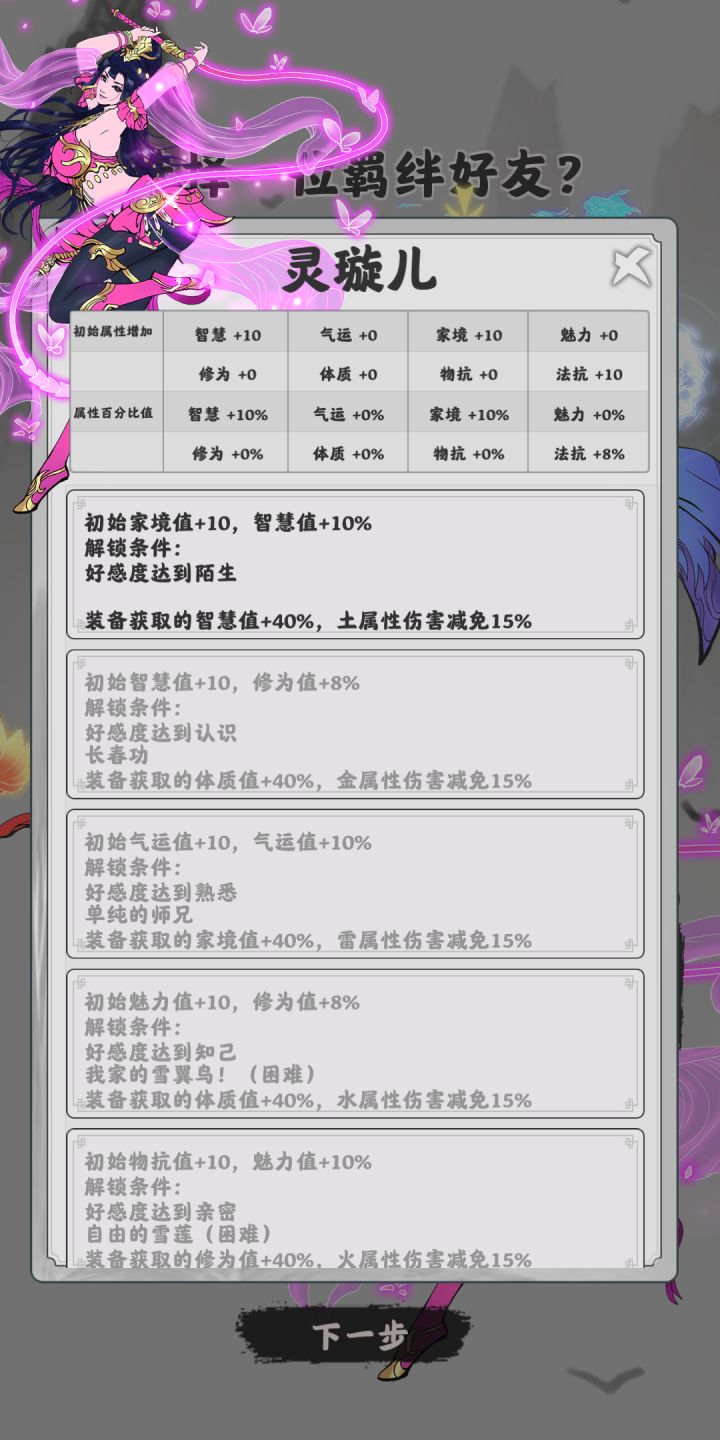 有小bug我在选择羁绊的时候点了一下悠雅上面的问号,再去点其他问号也是显示出悠雅的,看图看图