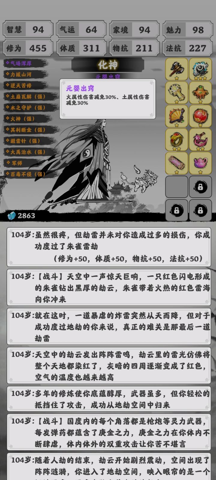 最开始还有宠物还有魅力或者运气加成选了一次蛟龙之后就只有水防御了