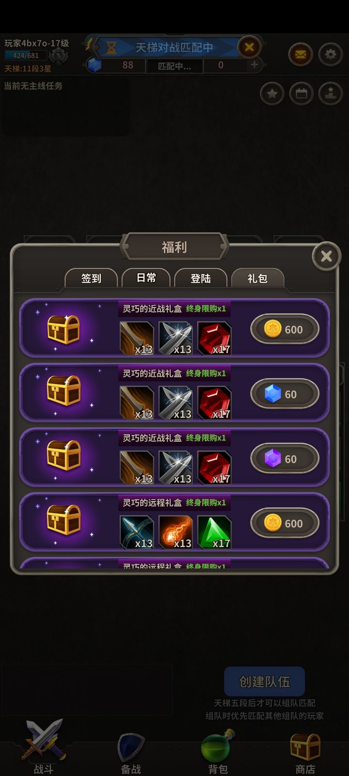 【冒险佣兵团】福利诚意满满,签到,日常,累计登录,累充,赛季宝箱等等;还有备战系统、外观系统、符文系统,让你游戏快乐无边! 资源获取: 金币:1、对局后会获得一定数量的金币,2、商店里每日金币礼包可直接获取金币(打完一场比赛后会在商店刷新),3、每日可以在商店里使用钻石可以兑换一次金币, 4、一些活动礼包可获取,5、紫钻兑换。 钻石: 1、天梯成就获取,2、天梯5段后每周都有一定钻石奖励,段位越高奖励越多,3、商店里每日钻石礼包可直接获取钻石(打完一场比赛后会在商店刷新),4、一些活动礼包可获取。5、紫钻兑换。 紫钻:紫钻界面充值获取,第一次充值会额外赠送一半的数量。 技能宝石碎片:1、箱子,2、礼包,3、登录签到。 符文:1、每日任务,2、天梯对战。 皮肤碎片:1、开箱子,2、商店里换,3、累计充值奖励。 奥术碎片(可以合成白银宝箱):1、分解低级箱子,2、风暴徽章,3、无尽过关奖励,4、无尽成就奖励,5、累计充值奖励,6、终身卡每日领取(适合平时时间较少的玩家)。 本游戏的核心备战系统,介绍如下: 备战系统为了游戏增加了养成元素,玩家通过搜集各种技能或者宝石碎片来提高自己额外的对局战力。提升备战技能或宝石等级可以提高在游戏中的战斗力,同时也可以提高获取概率。每提高备战技能或宝石5级,局类获取之后等级额外加1级。备战界面有个属性值叫幸运值,提高幸运值可以增加游戏中获得更多技能的选择的概率,游戏中物资每过30秒会随机出现3-6个物资选择,幸运值高,物资选择的数量可能就越多。 外观系统: 想改变下造型嘛,那可以通过外观系统来实现,打造不一样的英雄。每个箱子都有几率开出不同的外观皮肤,开宝箱和累积充值奖励是皮肤的主要来源,皮肤不仅仅可以改变外观,还能增加少量的初始属性和获得更高的宝箱几率,以后的版本皮肤套装可以进行洗练,打造出不一样的流派玩法。 符文系统: 如果说固定的场景属性太枯燥了,那么请使用符文系统可以打造出适合自己流派的场景。符文属性是随机掉落的,分正面属性和负面属性两种。正面属性有:结算极品率、压力值上限增加、金币掉落率增加、水晶掉落率增加等,其中结算宝箱极品率是自己独享,其他属性则是游戏中所有玩家平分共享。负面属性是给局内的所有怪物增加实力的属性,有很多词条,大家自行体验。每个英雄都可以装配自己独有的一套符文。对局中,装配符文之后会增加怪的攻击抗性之类的属性,给所有玩家增加一定难度。玩家可以装一些对自己的角色属性影响不大而增强怪物属性的符文,给对手制造麻烦从而战胜对手。 打造独特的你,欢迎入坑!