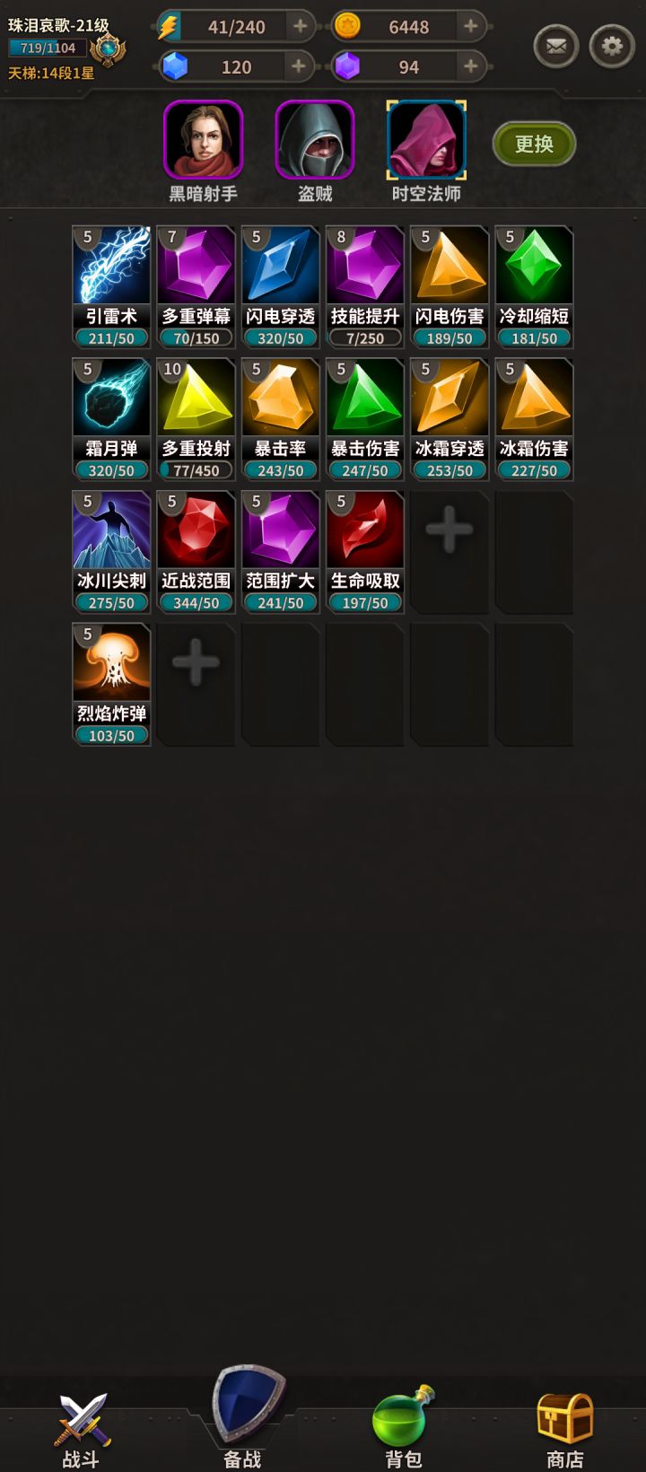 做一手cd法师攻略吧cd流法师。在最近更新了怪的速度之后,一跃而起。成为了打节奏的一个c,他通过本身性质,前期大量积累资源,来达到快速增压的目的。首先,玩他需要蓝色时空法师,其次,技能最好还是5级以上,如下是我的备战和常规的cd法师不同,我的时空法师是放弃暴风雪等aoe的(所以别以为你看到我拿普攻就是卡技能),这里说下我的理解,因为cd法师清怪速度以及技能分配缘故,第4个aoe技能必定没有伤害,且类似暴风雪这种技能会大量打空所以我选择通过宝石附魔等手段再额外弄到一点冷却,80-90,达成3技能循环来节省循环时间其次,出装,两个紫cd杖,金帽子,金元素球,最后一件可以是雷神可以是暴击帽子出怪方面,在你出满装备以前哥布林一定第一时间买满,然后大怪看压力和boss掉落出,对面压力高直接全拉攻击,就不和对面拖后期,看着压不死就两个防御之后攻击,来不来杀敌也只能22买两个cd法师玩的好的话,是能和天胡多重的弓打中期的,关键是节奏,建议各位朋友多加练习😌