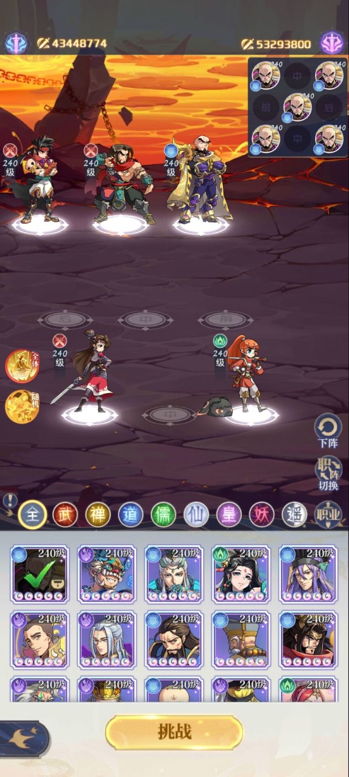 前提提示:该攻略为手动施法。一定要看全,看全就没问题叠个甲:如果还是过不了那一定是我的问题不是你的问题第四关阵容布局如下说明:开局三藏的随机攻击最好是打到孔子,释放戚继光技能可以直接秒杀王昭君和孔子(前提是三藏的攻击要打到孔子),随后释放九尾技能基本清场。第五关阵容布局如下说明:开局点戚继光技能秒杀猴子并且把袁天罡复活次数消耗完,注意每一次追击不能被猴子闪避,闪避一次就重开。猴子击杀完释